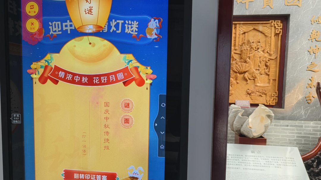 活动内容:通过触屏设备参与趣味灯谜挑战,海量题库等您来战,边玩边学,乐享双节。