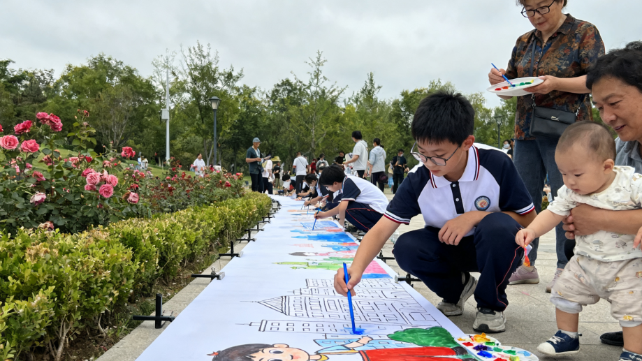 (2) 长卷创作活动:铺设主题画布长卷,设置创作点位,提供绘画工具,邀请公众共同描绘祖国景象,完成集体创作。